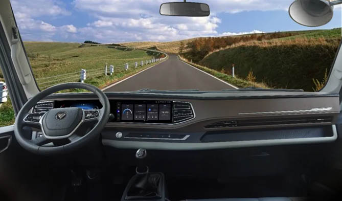 當然,這款車還擁有2060mm的駕駛室寬度,標配氣囊減震座椅+氣動腰托,360全景環視、疲勞檢測系統、無鑰匙進入、一鍵啟動、雙聯智能大屏等舒適性和智能化配置,滿足年輕卡友的審美需求。