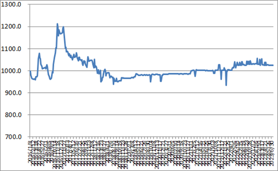 圖1 2016-2023年各周中國公路物流運(yùn)價指數(shù)