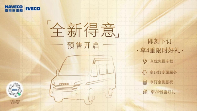 2月17日,“擁抱變化·贏未來——2023年南京依維柯商務年會”于南京隆重召開。在大會上,依維柯全新得意系列產品正式開啟預售。四款車型的預售價格分別為:多功能客車12.18萬元起;商旅通勤客車13.68萬元起;廂式運輸車11.88萬元起;專業底盤14.28萬元起。預售期間,只需99元誠意金,就能夠尊享南京依維柯官方提供的“優先提車權、訂金膨脹權、1對1專屬服務、VIP驚喜好禮”等多重限時鉅惠福利。