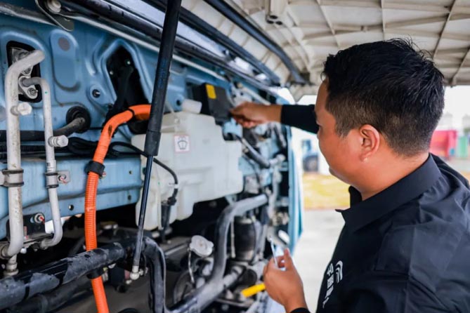 另一重“適用”體現在可靠上。重卡運輸的出發和收工時間不可控,再加上連軸轉式運營和堪稱惡劣的使用環境,“沒問題”往往是最大的難題。宇通把問題留給自己,把“沒問題”留給用戶——行業首個軟硬件一體化的睿控E平臺,穩定性極佳的自主研發三電技術,抗沖淋、腐蝕的車身,讓宇通新能源重卡的出勤率達到90%。所以,即使在多雨、高溫的海南,7天連續行駛里程7559公里、24小時不間斷運營的測試車也沒有出現任何問題。