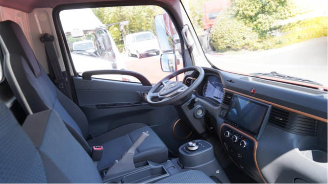 動(dòng)力方面,帥鈴EV5搭載著名品牌第三代單包電池,電池容量為81kWh,工況續(xù)航里程180km+,超長(zhǎng)質(zhì)保8年40萬(wàn)公里;擁有三級(jí)能量回收,有效提升續(xù)航里程,快充30%-80% SOC充電時(shí)長(zhǎng)不超過(guò)30分鐘;采用佩特來(lái)扁線(xiàn)電機(jī),峰值功率130kW,峰值扭矩360N·m,0-50km/h滿(mǎn)載加速僅需6秒,最高時(shí)速大于90km/h,最大爬坡度超過(guò)30%。