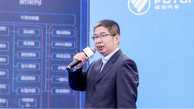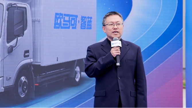 【福田汽車工程研究總院輕卡技術(shù)中心主任張文明講解歐馬可智藍(lán)E系列純電產(chǎn)品】