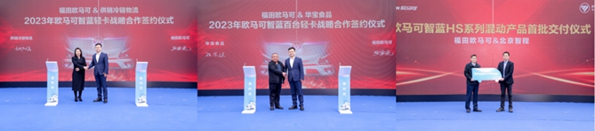 得益于強(qiáng)大產(chǎn)品力的加持及超值的政策,歐馬可智藍(lán)HS系列混動產(chǎn)品一經(jīng)上市即贏得用戶的高度認(rèn)可,上市即熱銷。活動現(xiàn)場,歐馬可智藍(lán)不僅與湖南供銷冷鏈物流、華寶食品簽署戰(zhàn)略合作協(xié)議,達(dá)成戰(zhàn)略合作,更向北京智程交付了2023年度百臺訂單的首批車輛。