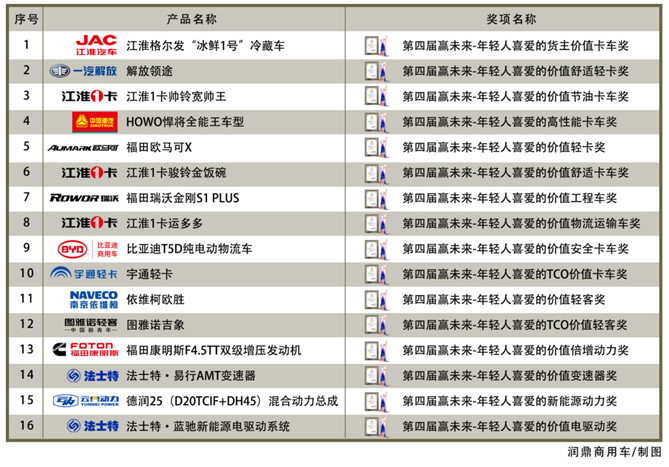 第四屆贏未來-商用車與零部件-年輕人喜愛的價值之選獲獎名單