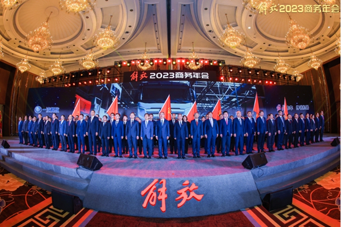 2月21日,“聚智鼎新 馭勢篤行 踔厲奮發 誓奪第一”一汽解放2023商務年會在美麗豐饒的天府之國—成都隆重舉行。一汽解放與全國各地的經銷商、服務商、備品經銷商、專用車企業和新聞媒體等事業合作伙伴齊聚一堂,共同回顧解放2022的非凡征程,堅定信念誓贏2023的全新征程。會議由一汽解放營銷總部部長、銷售公司黨委書記、總經理張松主持。