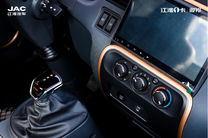 依托江淮1卡8代駕駛室經(jīng)驗,駿鈴聚寶盆造型動感大氣,倒梯形進(jìn)氣格柵、藍(lán)色JAC標(biāo)融合兩側(cè)金色飾條,完美勾勒出“聚寶盆”造型,承納天地福運(yùn),集蘊(yùn)乾坤久福;內(nèi)飾更加精致時尚,金色裝飾條質(zhì)感滿滿,鋁合金多功能方向盤、10.1寸智能大屏、鼠標(biāo)式電子檔桿、駐車空調(diào)、皮質(zhì)座椅等配置,全面向乘用車看齊,像轎車一樣開輕卡。