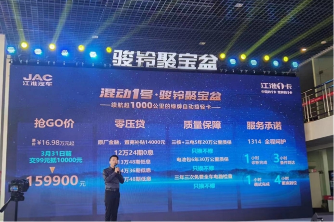 2023年3月9日,續(xù)航超1000公里的綠牌自動擋輕卡——江淮1卡混動1號·駿鈴聚寶盆在武漢全球上市。安徽江淮汽車集團(tuán)股份有限公司相關(guān)領(lǐng)導(dǎo)出席,中國汽車流通協(xié)會商用車專業(yè)委員會主任鄭芳女士為江淮1卡授“續(xù)航超1000公里的綠牌自動擋輕卡”牌匾。深耕行業(yè)五十九載,江淮1卡堅持技術(shù)創(chuàng)新,深研混合動力技術(shù),掌握尖端續(xù)航科技,打造出技術(shù)領(lǐng)先、節(jié)能環(huán)保與性能操控兼具的“混動1號”系列車型,構(gòu)筑起混動輕卡市場的領(lǐng)先優(yōu)勢。作為全球首款混動輕卡,混動1號·駿鈴聚寶盆車型以“六省價值”全面領(lǐng)跑輕卡行業(yè),以16.98萬元起的驚喜售價以及交99元抵10000元、原廠金融最高補(bǔ)貼14000元、1314只換不修等鉅惠購車政策,引爆輕卡市場,將在新能源商用車的發(fā)展浪潮中闊步向前,助推商用車新能源化轉(zhuǎn)型提速!