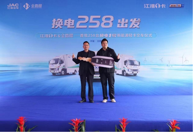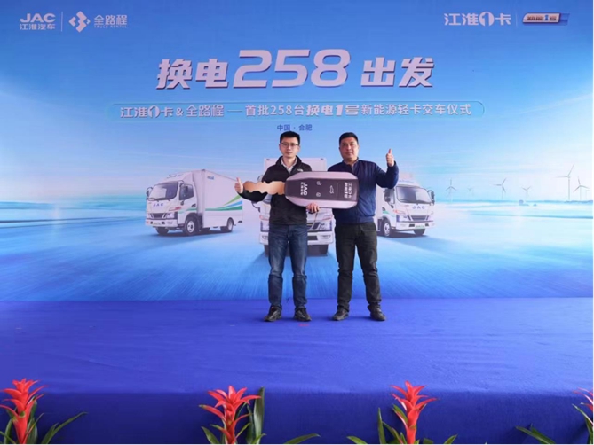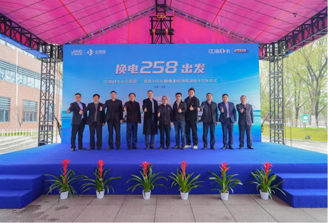 “攜手換電 共向未來”,3月23日,江淮1卡&全路程首批258臺換電1號新能源輕卡交車儀式在安徽合肥盛大舉行,安徽江淮汽車集團股份有限公司、全路程集團以及菜鳥物流相關領導出席。作為全國首個行業首家打造換電1號的企業,江淮1卡批量交付換電1號,在換電輕卡行業再次構筑領先優勢。