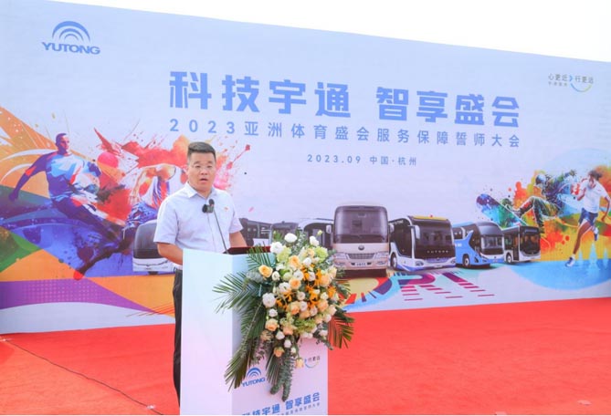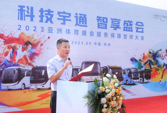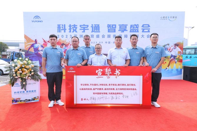 宇通客車閩浙服務(wù)分公司經(jīng)理周海鵬在誓師大會(huì)現(xiàn)場(chǎng)表示:“為了圓滿完成圓滿完成2023亞洲體育盛會(huì)的服務(wù)保障工作,我們從6月就開(kāi)始進(jìn)行服務(wù)保障方案的策劃,并持續(xù)執(zhí)行和完善,竭盡所能為乘客提供更舒適、更高效、更環(huán)保、更安全的出行體驗(yàn),鑄就客戶最佳服務(wù)體驗(yàn),譜寫(xiě)國(guó)際盛會(huì)服務(wù)保障新畫(huà)卷。”