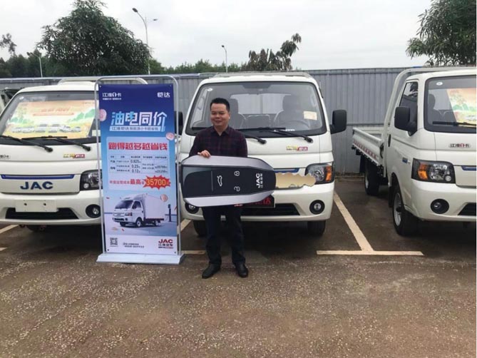 經(jīng)營汽車零部件銷售的馬老板也特地趕在此次活動前來增購江淮1卡愷達42度純電小卡。為什么偏愛江淮1卡新能源?原來早在2017年,他就購買了江淮1卡新能源小卡,是江淮1卡新能源的老客戶。這輛新能源小卡行駛了30多萬公里沒出過任何問題,所以馬老板非常信賴江淮1卡新能源小卡,這次活動直接全款購買了愷達42度純電小卡,喜提愛車。