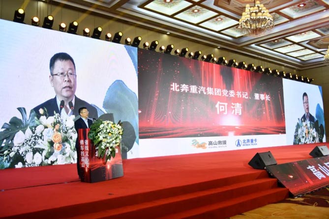 高會(huì)山在致辭中表示,高山汽修救援與北奔重汽、雙星集團(tuán)、聚能重工集團(tuán)、河鋼集團(tuán)、京東等國(guó)有、民營(yíng)大型企業(yè)以及社會(huì)大型物流企業(yè)福佑卡車等實(shí)現(xiàn)了深度合作。更多社會(huì)名流、行業(yè)大咖成為高山汽修救援志同道合的合伙人,有力地促進(jìn)了高山汽修救援事業(yè)的高質(zhì)量發(fā)展。北奔重汽黨委書(shū)記、董事長(zhǎng)何清贊美高山汽修救援為“民之英豪”,高山人深受鼓舞。作為有著“紅色基因”的國(guó)之重器北奔重汽,與高山汽修救援相互賦能,充分發(fā)揮各自優(yōu)勢(shì),積極探索新的合作模式,建立起全方位的合作關(guān)系。高山汽修救援審時(shí)度勢(shì),精心謀劃,超前布局,把控汽修救援行業(yè)數(shù)字化發(fā)展現(xiàn)狀和趨勢(shì)對(duì)經(jīng)濟(jì)社會(huì)發(fā)展的影響,認(rèn)真落實(shí)國(guó)家大數(shù)據(jù)戰(zhàn)略,以前瞻性的視野和創(chuàng)新的理念,積極建設(shè)數(shù)字化智慧救援平臺(tái),為中國(guó)汽修行業(yè)樹(shù)立新的標(biāo)桿,也為全國(guó)的商用車司機(jī)朋友帶來(lái)了更加便捷、安全的服務(wù)體驗(yàn)。