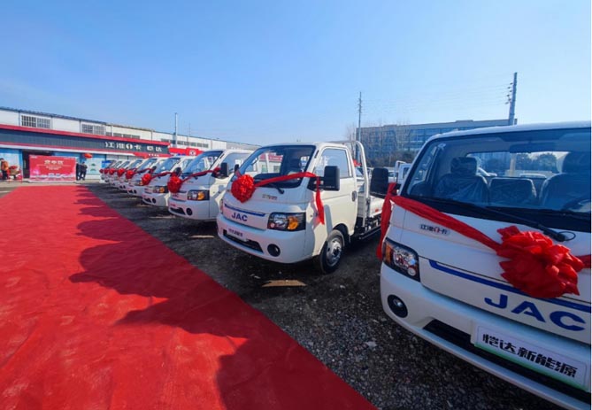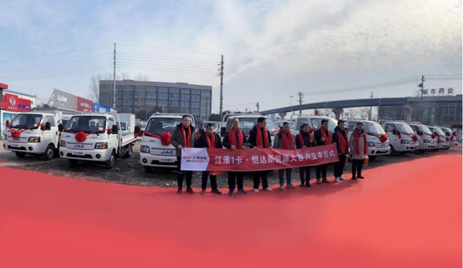 以綠色動能,促價值提升。10臺愷達EX6正式交付京豐電子公司,走向電器配送運輸之路,標志著江淮1卡與京豐電子將攜手開啟新的征程,實現共同進步。未來,江淮1卡將全力做好售后服務工作,助力京豐電子用車更省時、省力、省心、省錢,構筑降本增效“新”優勢。