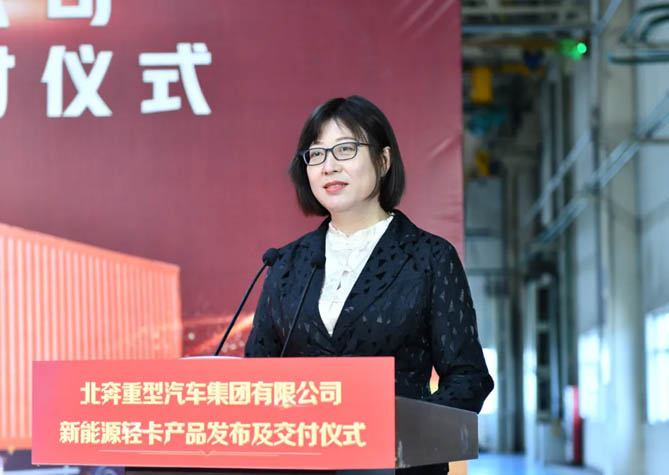 劉海泉宣布了北奔重汽首批新能源輕卡發(fā)車。