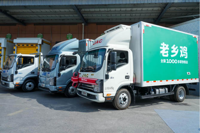從母雞養殖、食品加工到連鎖經營,冷鏈運輸是其中的關鍵一環。在老鄉雞合肥中央廚房,這里有一座5000噸級的倉儲物流中心以及與之匹配的恒溫冷鏈物流車隊,確保食品安全。10多年前,老鄉雞就開始采購江淮1卡作為運輸車輛。如今,老鄉雞以合肥為圓心,輻射整個安徽乃至全國,擁有100多輛江淮1卡冷藏車,提供強大的運輸保障。