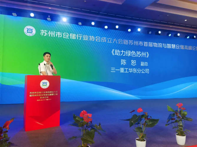 三一重卡華東分公司副總陳恕以《三一重卡 助力綠色蘇州》為主題,介紹了三一新能源重卡在物流運輸市場的核心能力,其中特別提到純電重卡在港口、園區(qū)、建材、快遞等行業(yè)得到廣泛應(yīng)用,為打造綠色物流貢獻了“三一”力量。