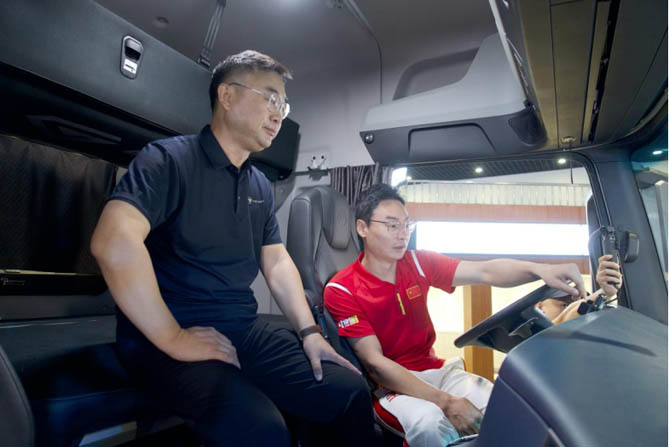 這與歐曼銀河智能重卡賦予用戶的運輸目標一樣。其在誕生之初就將“冠軍品質”融匯全身,依托中國重卡行業首個世界級驗證中心賦能,鏈合福康與采埃孚全球頂尖科技加持,保證產品細節和品質控制都更加符合市場需求,具有更加高效節能、更加智能舒適的優勢。體驗過后,“歐曼品質鑒證官”秦凱先生豎起大拇指贊道:“今天有幸親身體驗了歐曼智能重卡,我感受到了它的科技感和現代感,無論是外觀設計還是內部配置,都展現出了很高的水準。給我留下最深刻印象的就是它的超級動力鏈,強勁與穩定,這和我在跳水比賽中追求的動作力度與穩定性有著異曲同工之妙。我相信這款車一定能夠成為物流運輸行業的佼佼者。”