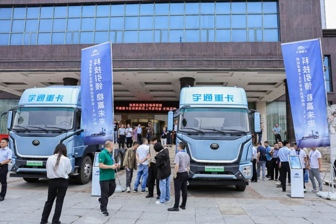 宇通重卡營銷公司副總經(jīng)理徐輝、中國汽研整車測評(píng)研究部主任徐磊、中汽兄弟副總經(jīng)理?xiàng)罱饑阮I(lǐng)導(dǎo),與廣大客戶、合作伙伴、媒體朋友共同見證了這一重要時(shí)刻。