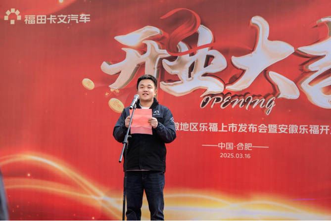 安徽樂福汽車銷售服務有限公司總經理黃偉松表示:“福田卡文汽車提供‘車效+運效’一體化解決方案,打造VAN類全新產品,未來將持續推出微卡、輕卡、重卡等產品,滿足全方位全領域全周期物流場景需求。福田卡文汽車將以好的產品為引領,以貼心服務為核心,很好的滿足市場需求,核心技術讓綠色貨運更高效!