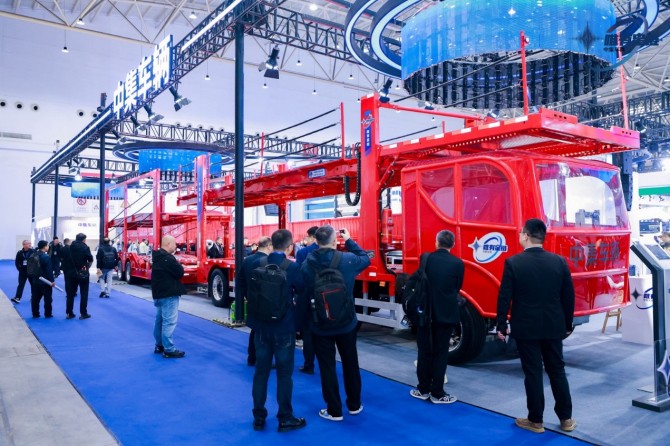 除了在液態食品運輸行業深耕外,中集車輛亦不斷推動車輛運輸車的升級迭代。“星辰風暴”車輛運輸車產品的驚艷亮相,是中集車輛響應2025年7月《車輛運輸車專項治理行動方案》,結合多年車輛運輸車設計經驗研發的全新車型,旨在為客戶提供合規、高效、安全、省心的車輛運輸方案。