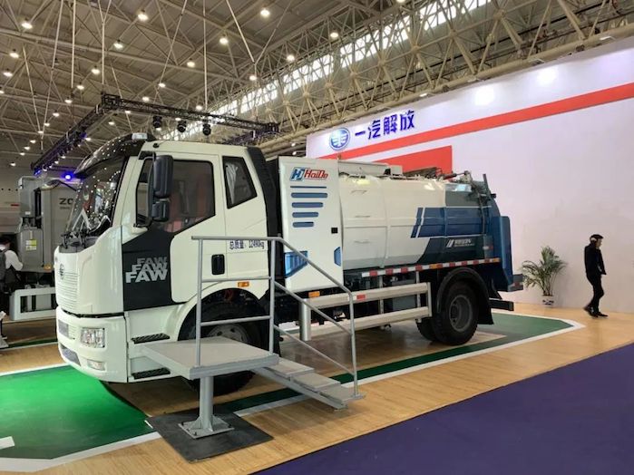 一汽解放在2019中國國際商用車展上展出了一系列的純電動專用車,純電動餐廚垃圾車、純電動車廂可卸式垃圾車及純電動掃路車齊亮相,體現了一汽解放積極響應國家政策,積極促進商用車減排環保快速發展。