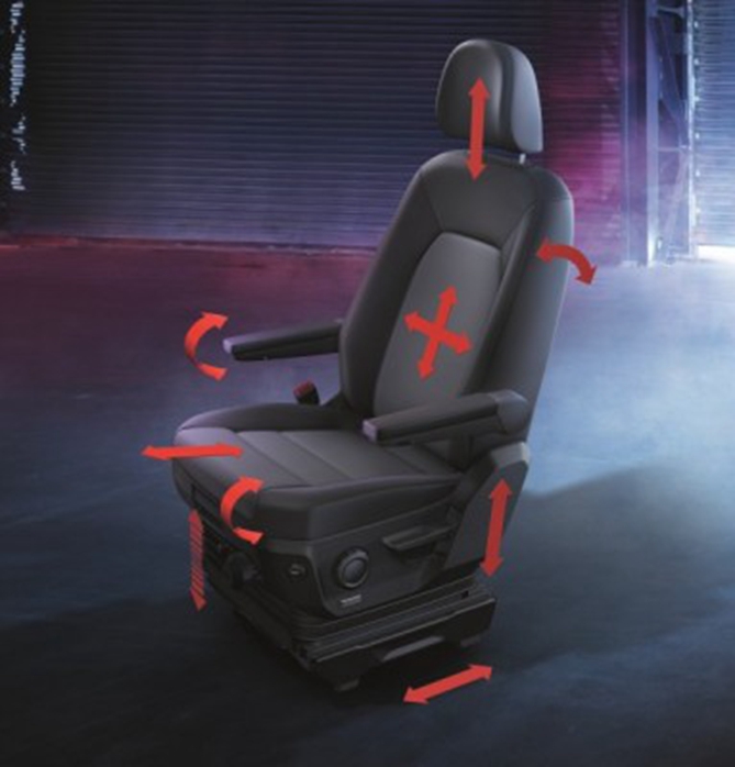 曼恩TGE的這兩款多功能懸浮座椅滿足了AGR對堅固基本結構、四向腰部支撐、可調頭枕和座椅高度的要求。不僅可以幫助駕駛員調節最佳坐姿,還可以專項調整腰部支撐幅度,減輕脊椎所需承受的壓力,讓駕駛員及乘客在行車過程中保持既放松又健康的姿勢。此外,符合人體工程學的設計能確保長途旅行的舒適、緩沖惡劣道路的顛簸,還能提供按摩功能讓乘客更感放松。