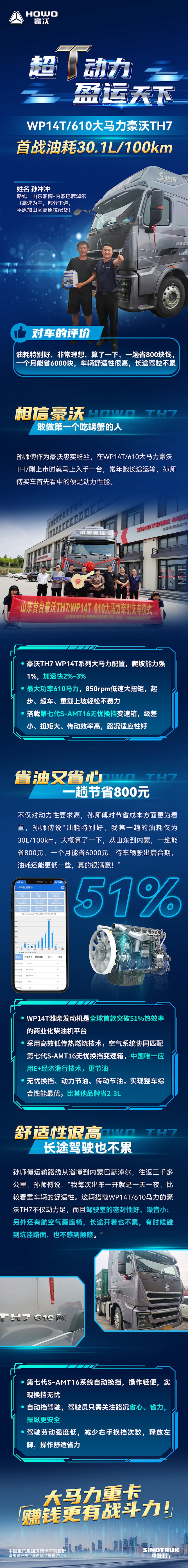 豪沃TH7+濰柴610超T動力,首戰百公里油耗僅30.1L!