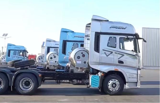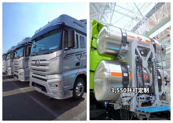 就目前市場趨勢來看,許多貨車司機不滿足于一個氣罐的儲量,主機廠也推出了多氣瓶的款式。解放J7 LNG牽引車的氣瓶容積支持1350L~3550L定制化方案,2350L氣瓶最長續航里程可達3000km,兼顧自重和氣耗,減少了進出加氣站頻率,從而提高出勤率,為用戶帶來更多收益。駕駛它“千里走單騎”不再有顧慮,車輛在各種工況下都能穩定可靠地運行。