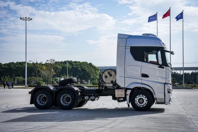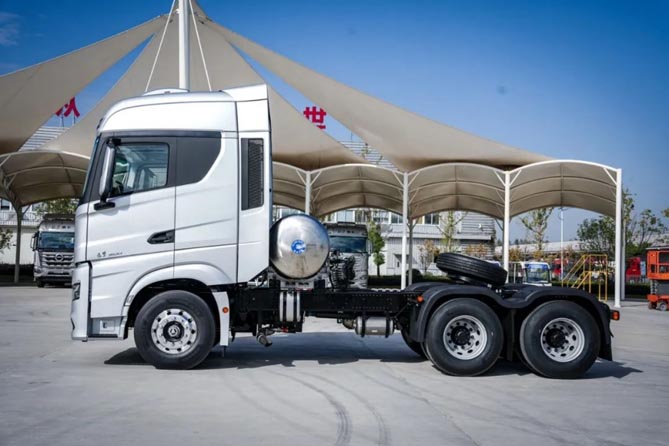 整車采用輕量化鋁合金輪圈、少片簧懸掛、一體化氣瓶支架、輕量化氣瓶,合理降重可達259公斤,整備質量低至8.6噸,車輛空載時仍具備更低的氣耗表現。