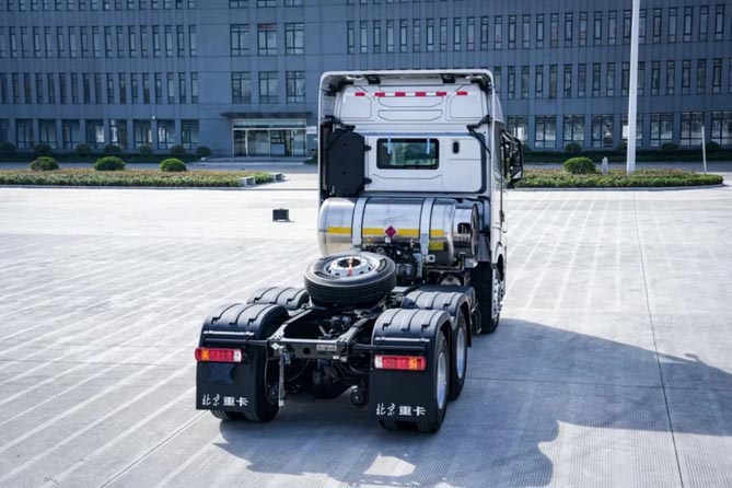 北京重卡LNG牽引車搭配福康15升燃氣機+采埃孚自動擋、1500升超大氣瓶、行業領先EBI智能制動系統,北京重卡LNG牽引車硬核來襲。