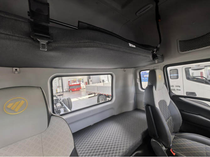 駕駛室是駕駛員呆的時(shí)間最長的地方,因此駕駛室的舒適性和空間大小顯得尤為重要。歐航智藍(lán)ER·246純電中卡最大限度的優(yōu)化了駕駛室空間,采用平地板設(shè)計(jì),使得車內(nèi)站立空間可達(dá)1.9米,為駕乘人員提供了寬敞舒適的空間。平地板設(shè)計(jì)不僅方便駕駛員在車內(nèi)活動(dòng),還能在裝卸貨間隙為駕駛員提供舒適的休息場(chǎng)所。