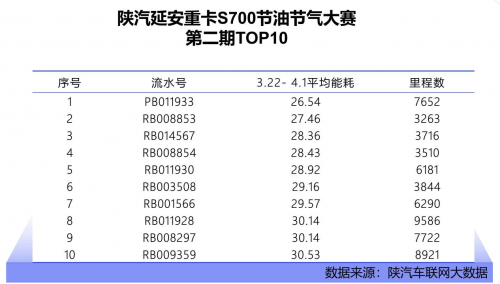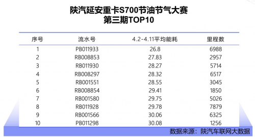 到了第三期比賽,競爭愈發激烈,據天行健智能車隊管理系統的能耗數據顯示,排名前八的車輛,平均能耗均穩定控制在百公里26-29L之間,更有車輛跑出了百公里26.8L、27.83L等的好成績。對于重型卡車而言,如此低的能耗水平實屬難得,這不僅意味著車輛運營成本能夠得到大幅降低,更以實實在在的數據,彰顯了延安重卡S700在節油節氣方面的顯著優勢。