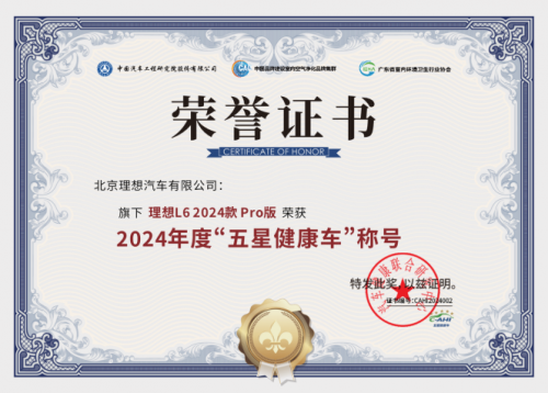 “五星健康車” 是由汽車健康聯合研究中心基于中國汽車健康測評指數(C-AHI)結果頒發的榮譽稱號,也是目前國內汽車市場中的健康乘用車榮譽形象。在2023版測評新規程中,理想MEGA和理想L6雙雙拿下“五星+”的最高評級,且分別位居純電車型和混動車型歷史第一名,拿到了雙狀元。在清新空氣、健康防護和綠色出行三個維度均獲得最高評級,為全家人提供全方位的健康環境。