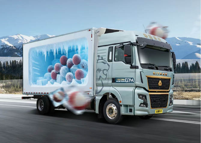 荔枝保鮮的核心是精準控溫,汕德卡G7H冷藏車化身"移動保鮮艙",為鮮甜荔枝保駕護航。其搭載智能化管理系統,可實現溫濕度數據全程回傳、隨時監控;同時,高效制冷系統能夠精準滿足荔枝冷運的保鮮需求,鎖定甜美口感,即便跨越山海也可做到 "人停車不停,鮮度不打折"。